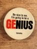 “Be Nice To Me. I'm Going To Be A Genius Someday.”(私に親切にしてください。私はいつか天才になるつもりです。)のメッセージが書かれた缶バッチです。