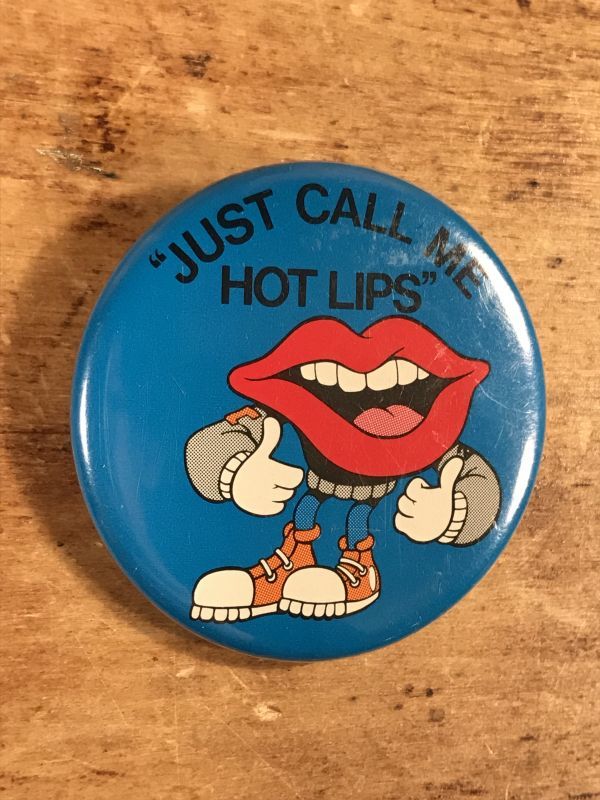 アメリカの食品メーカー「ゼネラルフーズ」の企業キャラクター“タンリップス”の「Just Call Me Hot Lips」(私を熱い唇と呼んでください)のメッセージが書かれている缶バッチです。
