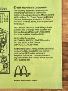 McDonaldland Fun Times “A Calendar Especially” Magazine マクドナルド ビンテージ ファンタイムズ フリーペーパー 80年代