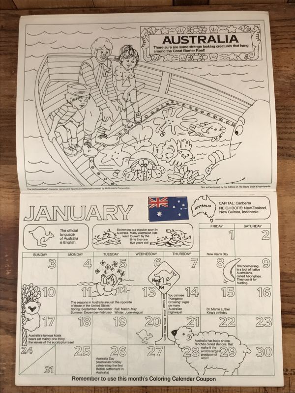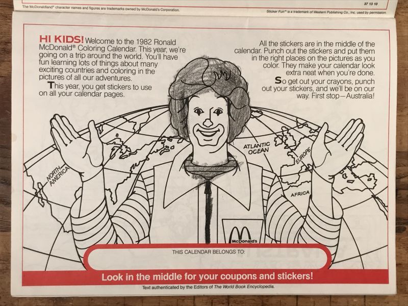 Ronald McDonald Sticker Fun “1982” Coloring Calendar マクドナルド ビンテージ カラーリングブック ロナルド 80年代