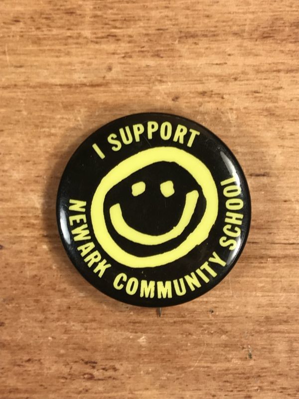 I Support Newark Community School Smile Face Pinback スマイル ビンテージ 缶バッジ ハイスクール 缶バッチ 70年代〜