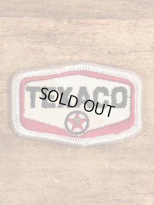 アメリカの石油会社“シェブロン”のオイルブランド“テキサコ”のロゴが描かれた裏面にのりが付いたタイプの刺繡ワッペンです。