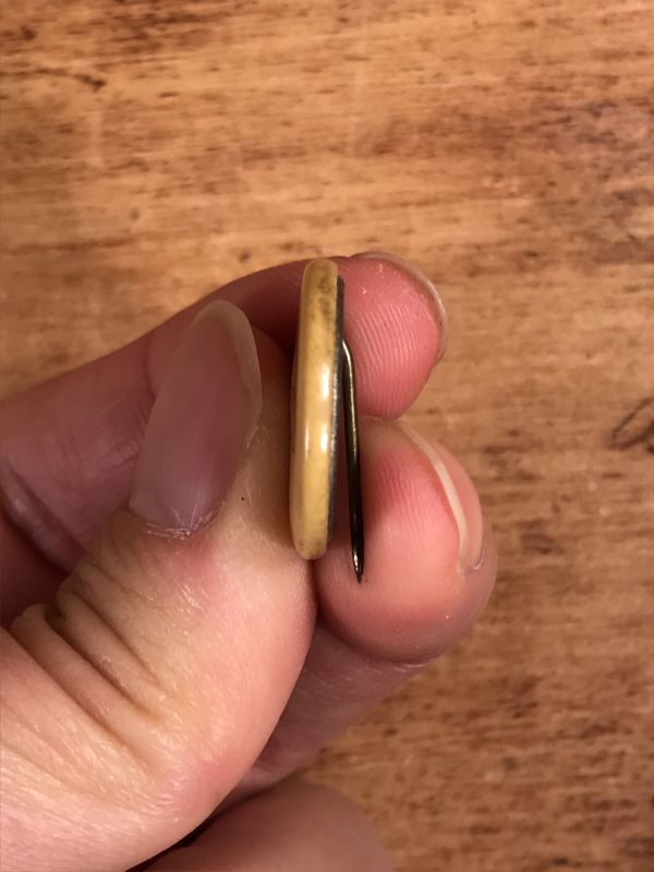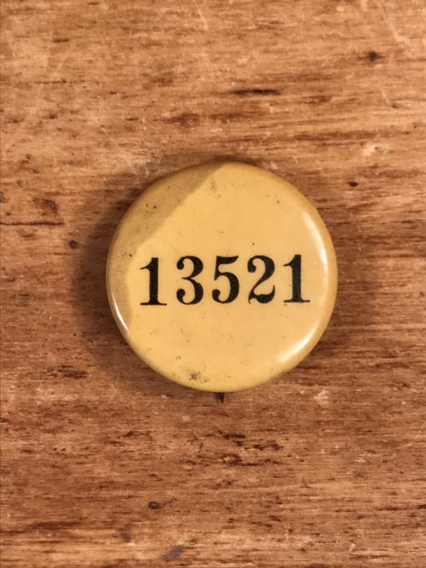 アメリカの企業物の番号が書かれた針が飛び出たタイプの小さめの缶バッチです。