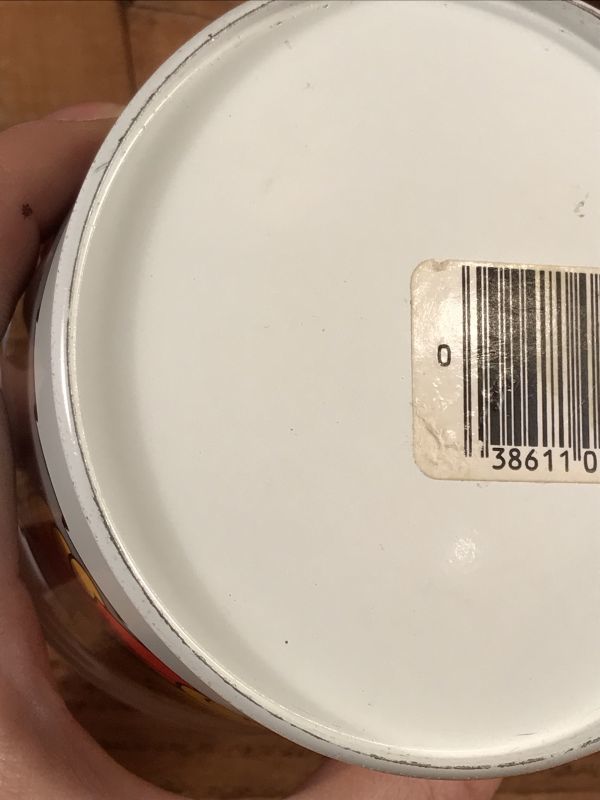 缶切りを持って穴をあけているガーフィールドが描かれた蓋つきのTin缶です。