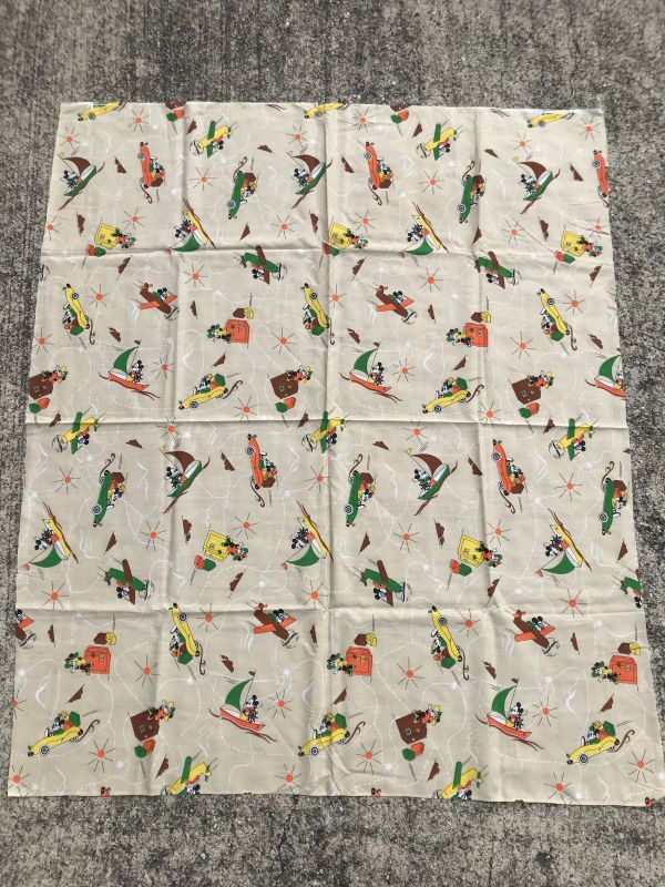 Disney Mickey Mouse “Vehicle” Cloth ミッキーマウス ビンテージ 端切れ生地 ディズニー 60~70年代