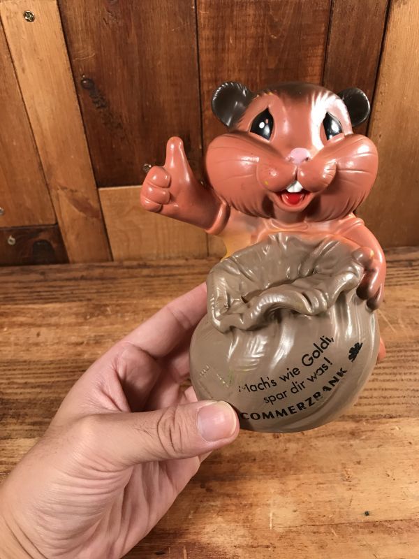 ドイツのメガバンク“コメルツ銀行”のリスのキャラクターのソフビ製の貯金箱フィギュアです。