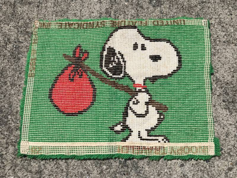 70年代頃のスヌーピーの毛糸製のラグマットになります。