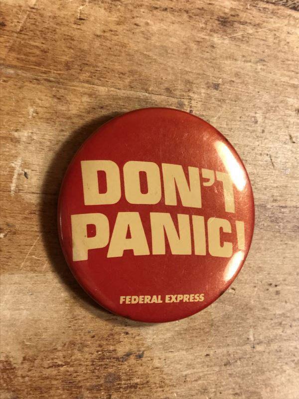 Don't Panic! Federal Express Pinback メッセージ ビンテージ 缶バッジ 缶バッチ 80年代