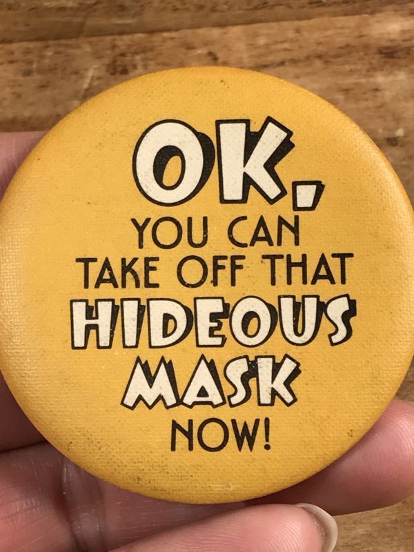 OK. You Can Take Off That Hideous Mask Now! Pinback メッセージ ビンテージ 缶バッジ 缶バッチ 80年代