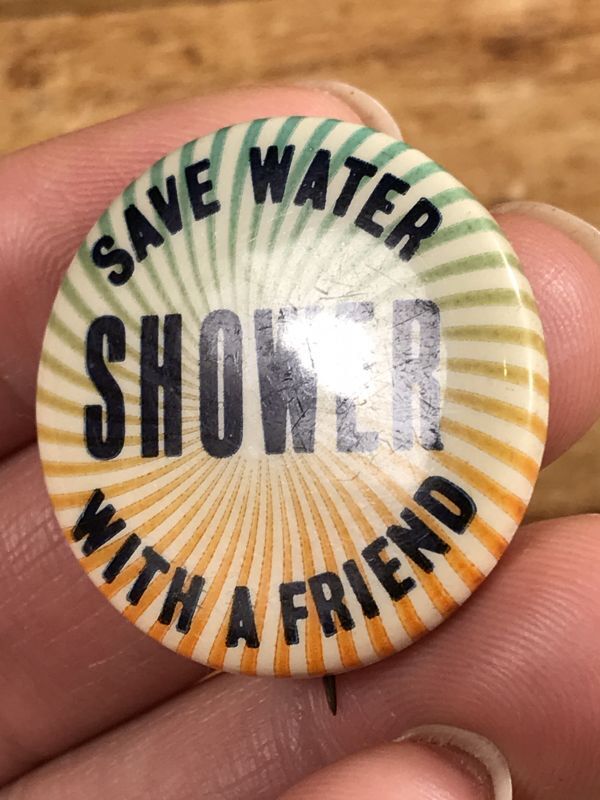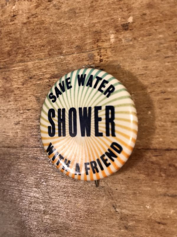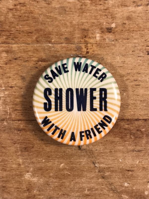 Save Water Shower With A Friend Pinback メッセージ ビンテージ 缶バッジ 缶バッチ 60~70年代