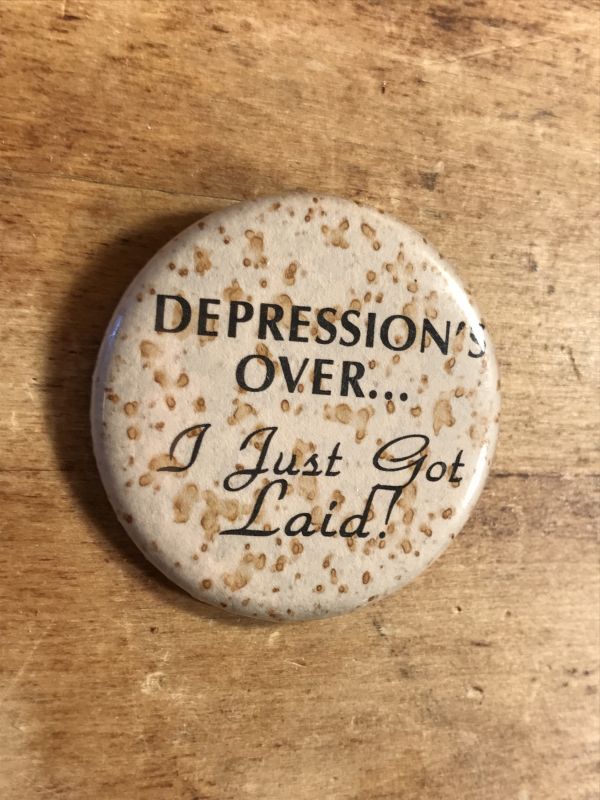 Depression's Over... Pinback メッセージ ビンテージ 缶バッジ 缶バッチ 80年代