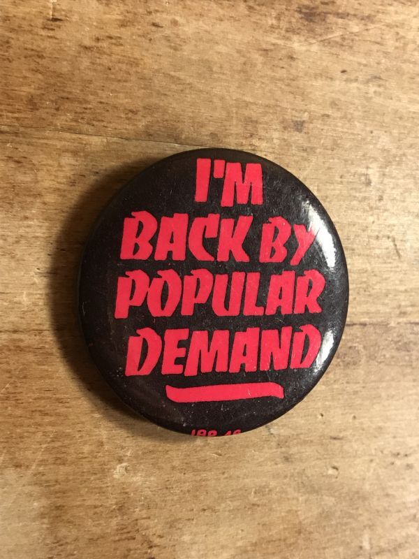 I'm Back By Popular Demand Pinback メッセージ ビンテージ 缶バッジ 缶バッチ 80年代