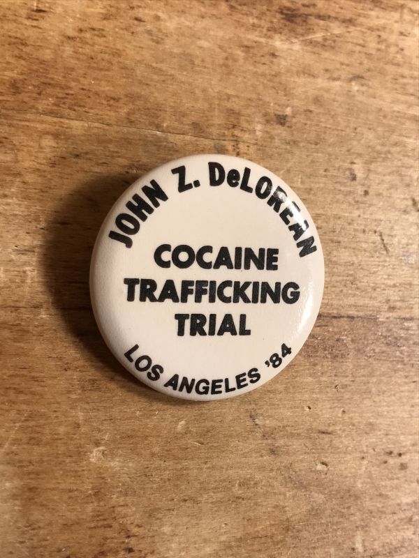 John Z. Delorean Cocaine Trafficking Trial Pinback ジョンデロリアン ビンテージ 缶バッジ 缶バッチ 80年代