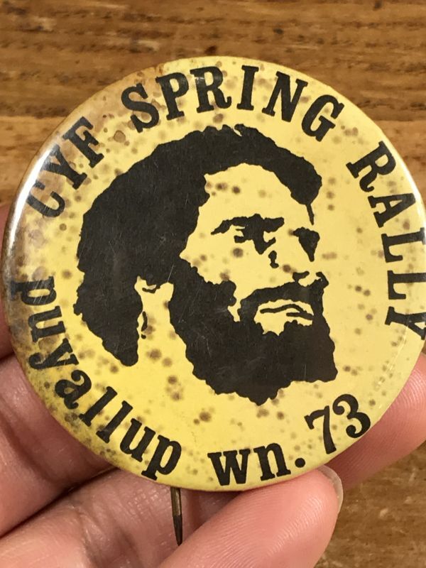 70年代頃のCYF Spring Rally puyallup wn.73の金属製の缶バッジになります。