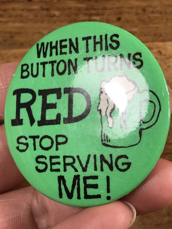 When This Button Turns Red Stop Serving Me! Pinback メッセージ ビンテージ 缶バッジ 缶バッチ 70~80年代