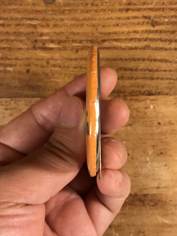 針が真鍮製で飛び出た古いタイプの缶バッジです。