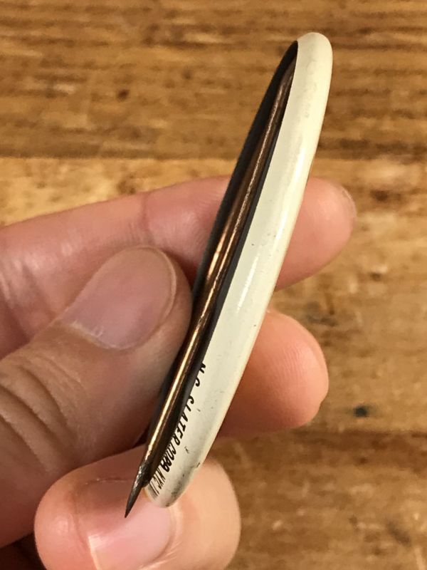 下淵部分にユニオンラベルの刻印があり、針が飛び出た古いタイプの缶バッジです。